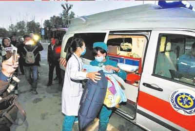在生活中,孩子们经常把异物卡在进气道里。作为父母,当这些紧急情况出现在你面前时,你应该做些什么才是正确有效的?首先要知道一件事:抢救的关键在于前10分钟,以及这10分钟内的一些急救技术,你可以掌握并应用到实践中。包头长途救护车转院告诉您父母如何急救异物卡喉?1.将孩子侧卧在一侧前臂上,同侧手固定下颌角,使头部稍微向后倾斜,打开气道。2.用另一只手固定孩子的头部和颈部,头部压低,头部低于身体,使用重